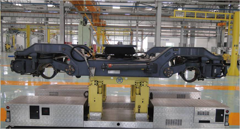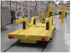 构架输送车 用于检修时构架、轮对、电机、齿轮箱、轴箱、轴承等部件在各工位间 检修库间的物流输送 ,可实现输送充电、调度管理全自动运行。