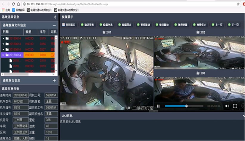 采用AI人工智能相关技术,基于人体骨骼识别算法。准确识别动作行为中的违规行为,结合图像目标识别技术,对乘务员的违规行为进行联合判定,同时从视频文件中提取值乘信息。实时监控转储的6A视频文件,生成违规信息、违规视频、违规报告,简化机车6A视频分析作业,为乘务员的标准化作业提供决策依据。