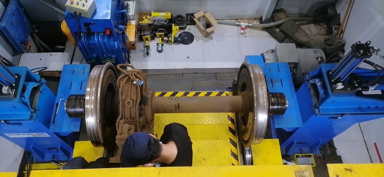 适用动车段动车组轮对(包括动轮和拖轮)跑合试验.