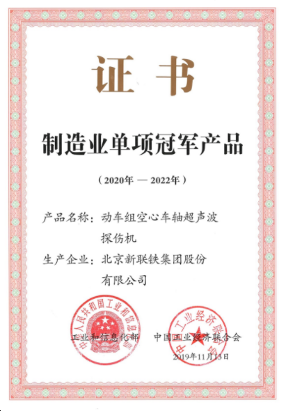 制造业单项冠军企业培育提升专项行动自2016年开始实施,旨在引导国内企业专注细分产品领域、产品质量提升和品牌建设,突破关键领域短板,培育具有全球竞争力的世界一流企业,促进我国制造业高质量发展。其中“制造业单项冠军产品”要求该产品近三年市场占有率位居全球前3位,生产技术或工艺国际领先,这也侧面说明新联铁“动车组空心车轴超声波探伤机”产品在行业内的领军地位。