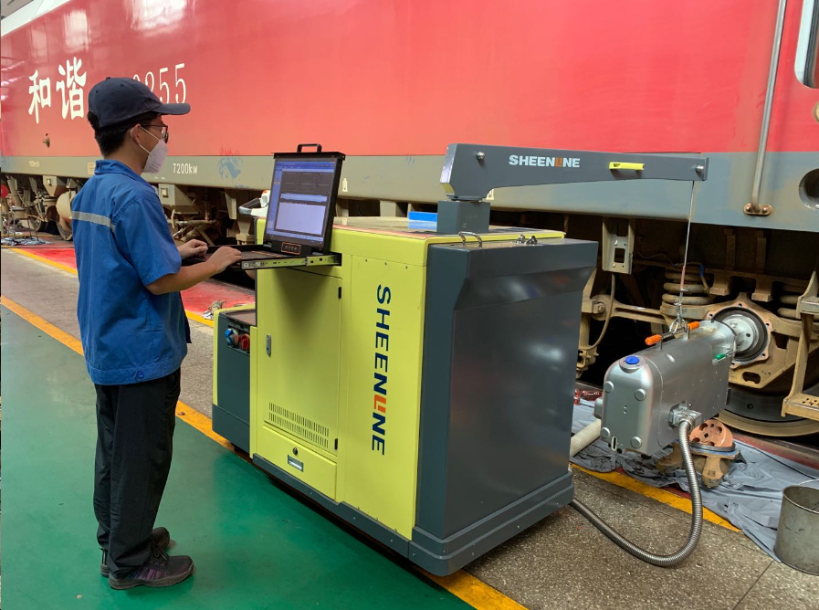 面对动车组轮轴探伤设备取得的成功, 公司未止步不前,又把眼光投向了机车市场。长期以来,国内机车相关技术相对滞后,车轮、车轴在运用阶段大部分采用传统的人工方式进行检测,效率低、不稳定性高,存在一定的安全风险。随着中国铁路160公里及以上时速机车和CR200J动力集中型动车组的逐步运用,人工检测方式已经无法满足作业需求。在此背景下,2019年11月,公司与广铁集团联合科研立项,经过在广州机务段一年的现场安装、试用、测试和评审,完成了机车在线移动式轮辋轮辐探伤复合机器人和机车空心车轴超声波探伤设备的评审,率先拿到了进入机务轮轴检修市场的“钥匙”。