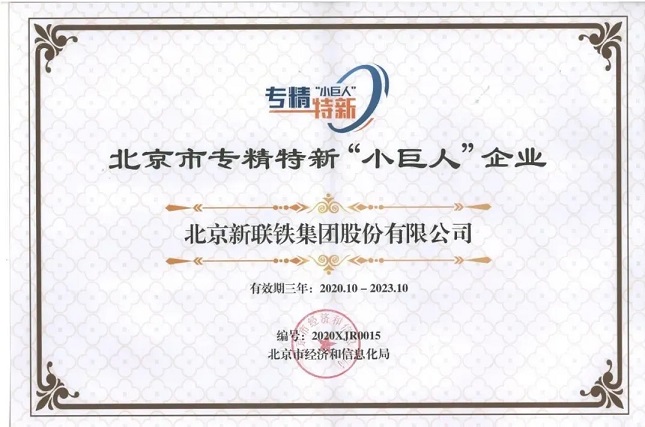 近日,北京市经济和信息化局正式颁发第一批北京市专精特新“小巨人”企业荣誉证书,北京新联铁集团股份有限公司荣获北京市专精特新“小巨人”企业证书。